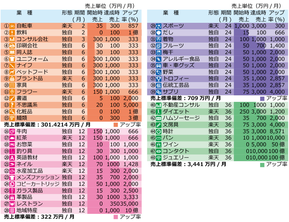 その頃えとコミ塾に出会いました。当時の売上は一部の単価の高い商品がヒット商品となってできたことだったのですが、今回の100万達成というのは、その、一部のヒット商品だけではなくて、いろいろな種類の商品が売れて、結果として100万円という売上を達成することができたのです。