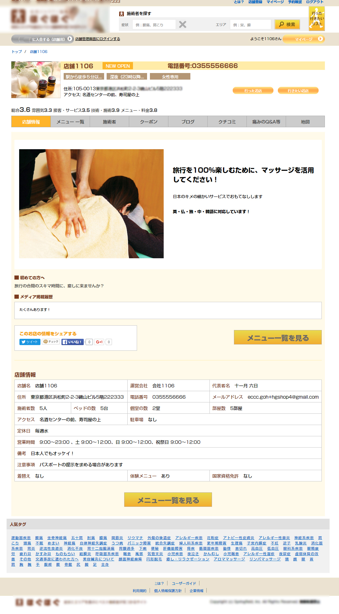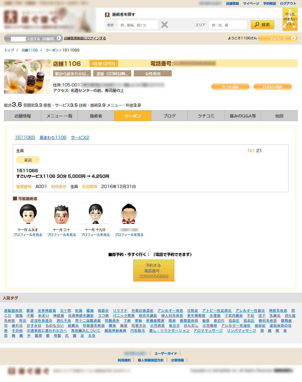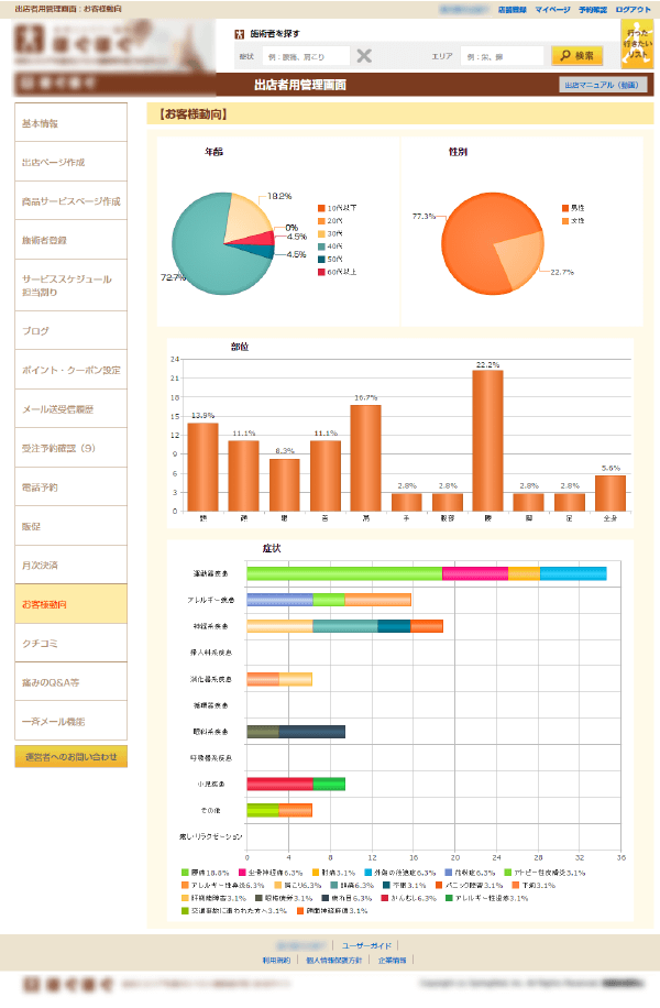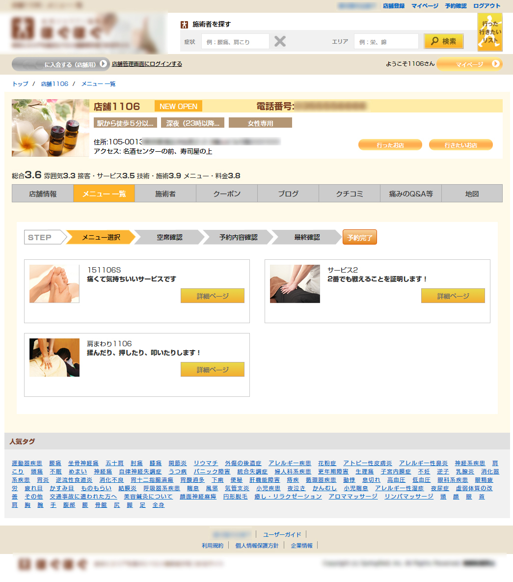 専門店のポータルサイト 地域による検索機能や予約機能も備えました。